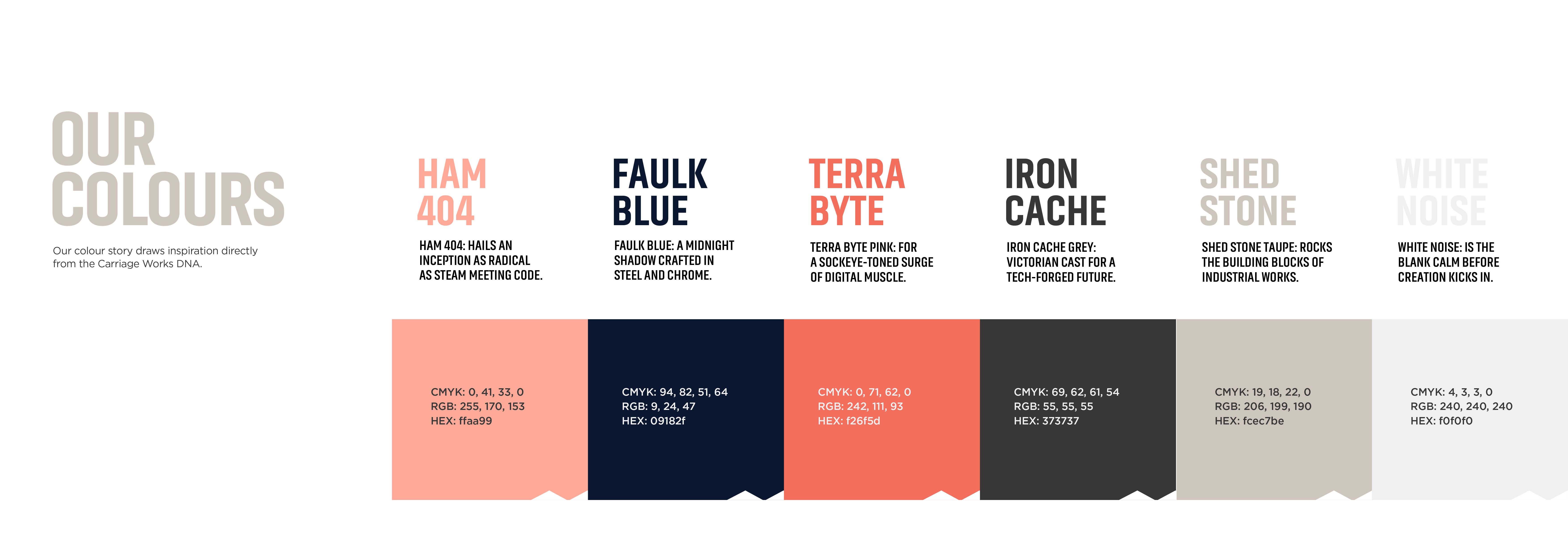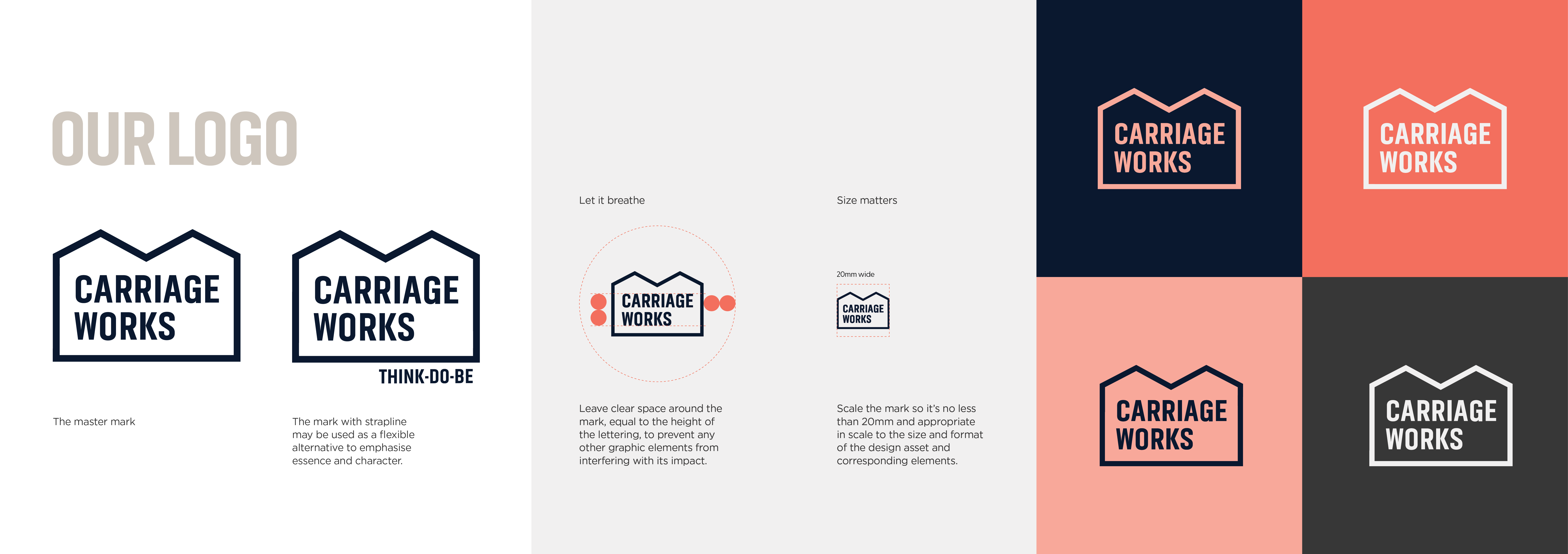 Our approach began where it always does: research, context and intent. We immersed ourselves in the site’s history, its architecture and its ambition, translating physical structure and place-based meaning into a flexible visual system. The result is a brand identity that feels engineered rather than decorated. Functional, distinctive and unapologetically purposeful. A brand designed not just to look right on day one, but to work hard over time, supporting Carriage Works as it evolves into its next chapter.